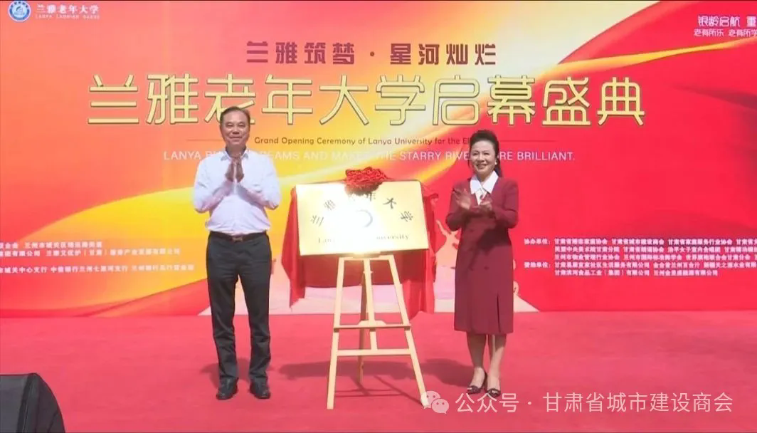 8 月 24 日,兰雅老年大学启幕仪式在兰雅星河湾活动广场隆重举行。甘肃省总工会党组成员、副主席吴俏燕,甘肃省工商联党组成员、副主席朵雪青,甘肃省工商联原一级巡视员张勇等省市领导,以及甘肃省城市建设商会会长李忠鑫、党委书记陈启建、监事长宋艾芳、高级顾问陈万智、轮值执行会长范顺才、执行会长李晓龙、执行会长张勇、秘书长胡春兰等嘉宾共同见证这一温暖时刻。