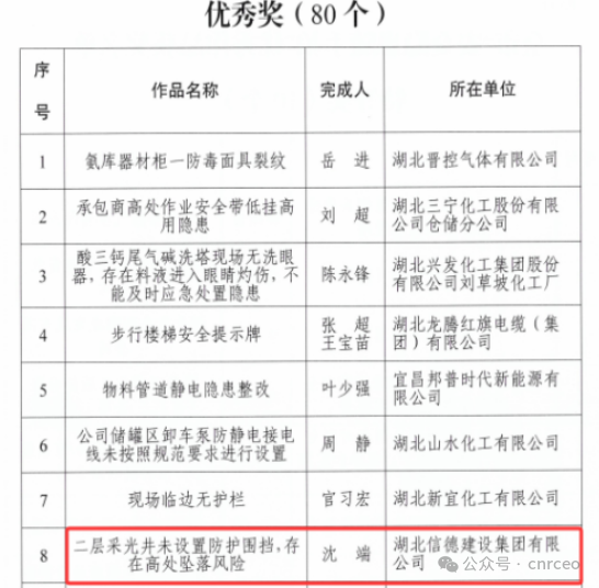 近日,宜昌市总工会与市应急管理局联合发文,公布2025年全市“安全隐患随手拍”作品征集结果。信德建设集团贵州珍酒陶坛库项目部安全员沈端、长江天序项目部安全主管李沫沙,凭借精准排查的安全隐患作品,双双荣获优秀奖,并获得市应急管理局直接发放的1000元奖励。