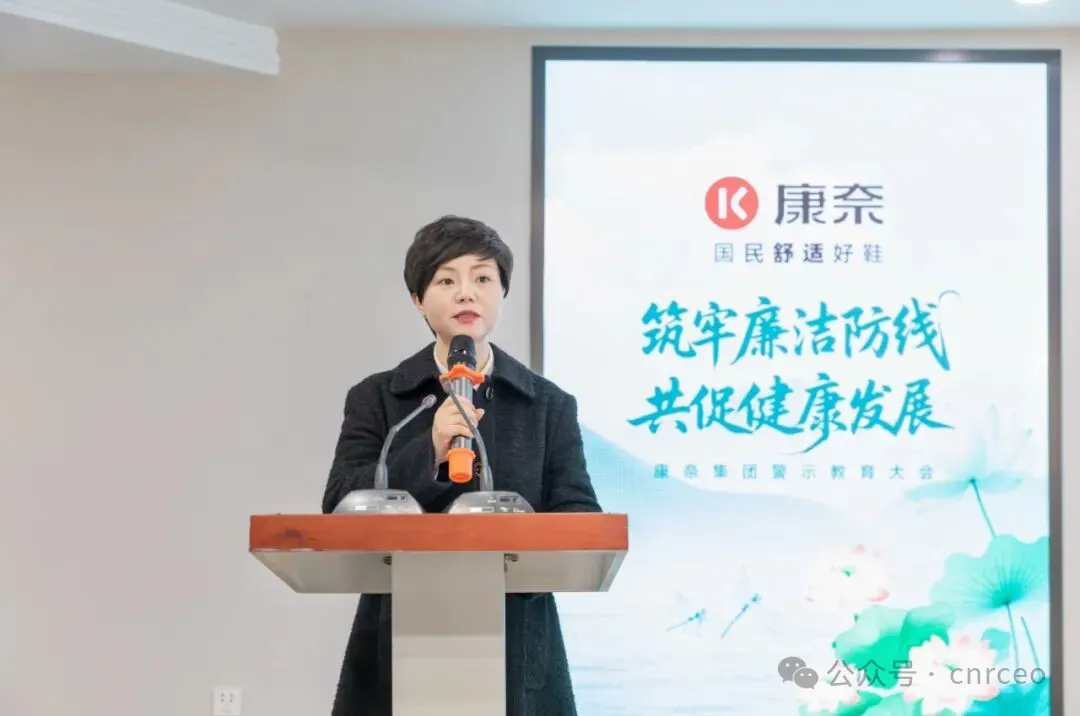 1月19日, “筑牢廉洁防线,共促健康发展” 康奈集团警示教育大会在康奈办公大楼11楼会议厅举行。鹿城区人民检察院副检察长蒋儒博,鹿城区人民检察院第三检察部(职务犯罪和经济犯罪监察部)主任林唯珏等领导莅临指导,康奈集团总裁郑莱莉出席活动。